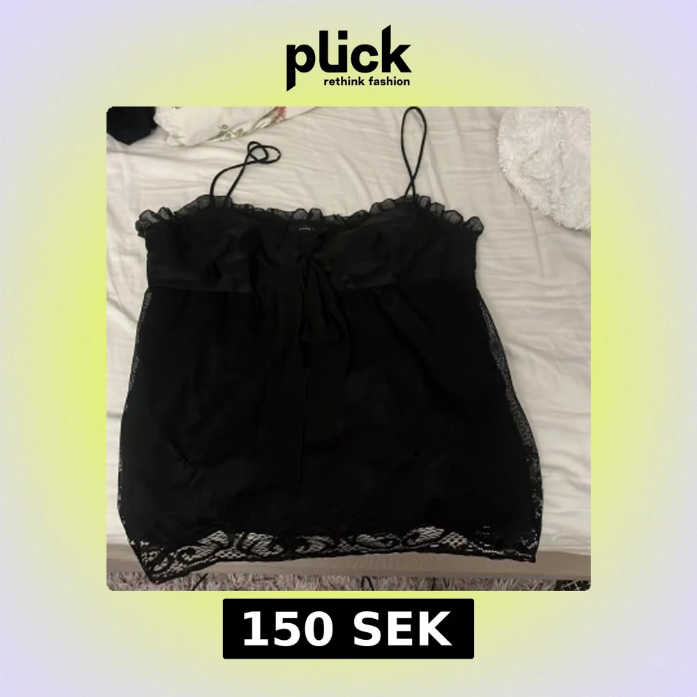 Säljer en elegant svart axelbandslös topp från Zara Basic. Toppen har spetsdetaljer och en söt rosett framtill. Perfekt för en stilren look. 🖤