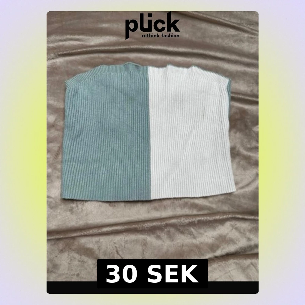 Trendig bandeau topp i ribbat material med tvåfärgad design i ljusblått och vitt. Toppen är axelbandslös och croppad, perfekt för att styla med höga jeans eller kjol. Mjuk och stretchig för en bekväm passform. Rök och djurfritt hem. Pruta gärna !🌸