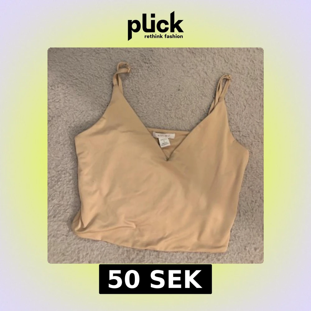 Snygg beige linnetopp från Amisu med smala axelband och v-ringning. Perfekt för varma dagar eller att styla lager på lager. Enkel och stilren design som passar till det mesta. Storlek L men den passar som S