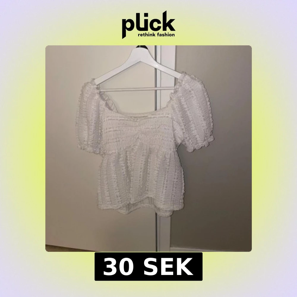 Supersöt vit blus med puffiga korta ärmar och smockad struktur. Blusen har en fyrkantig ringning och volangig nederkant som ger en romantisk vibe. Perfekt för dig som gillar en feminin och trendig stil.