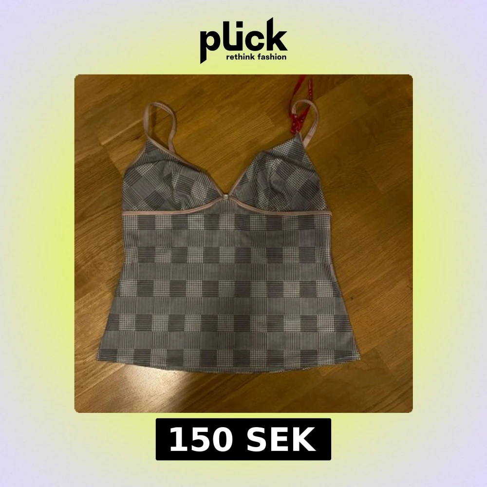 Supersnygg linnetopp från Misstriumph med rutigt mönster i svart, vitt och grått. Toppen har tunna, justerbara axelband i ljusrosa och en markerad söm under bysten. Perfekt för dig som gillar trendiga och stilrena plagg med en twist.