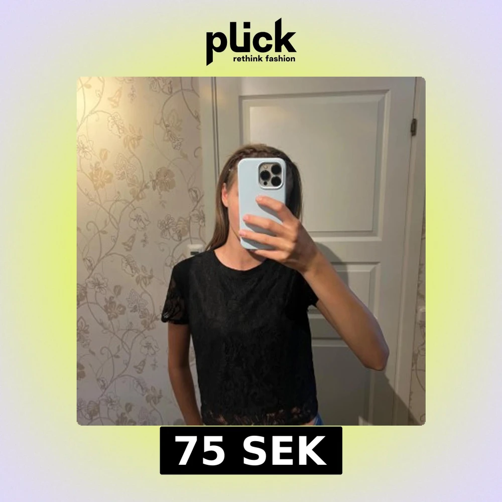 Svart blus i spets från FB Sister med korta ärmar och rund hals. Blusen är croppad och har ett snyggt blommigt spetsmönster som ger en cool och trendig vibe. Perfekt att styla med jeans eller kjol för en extra touch. Den är i storlek L men skulle säga att den är mer som en s eller xs.