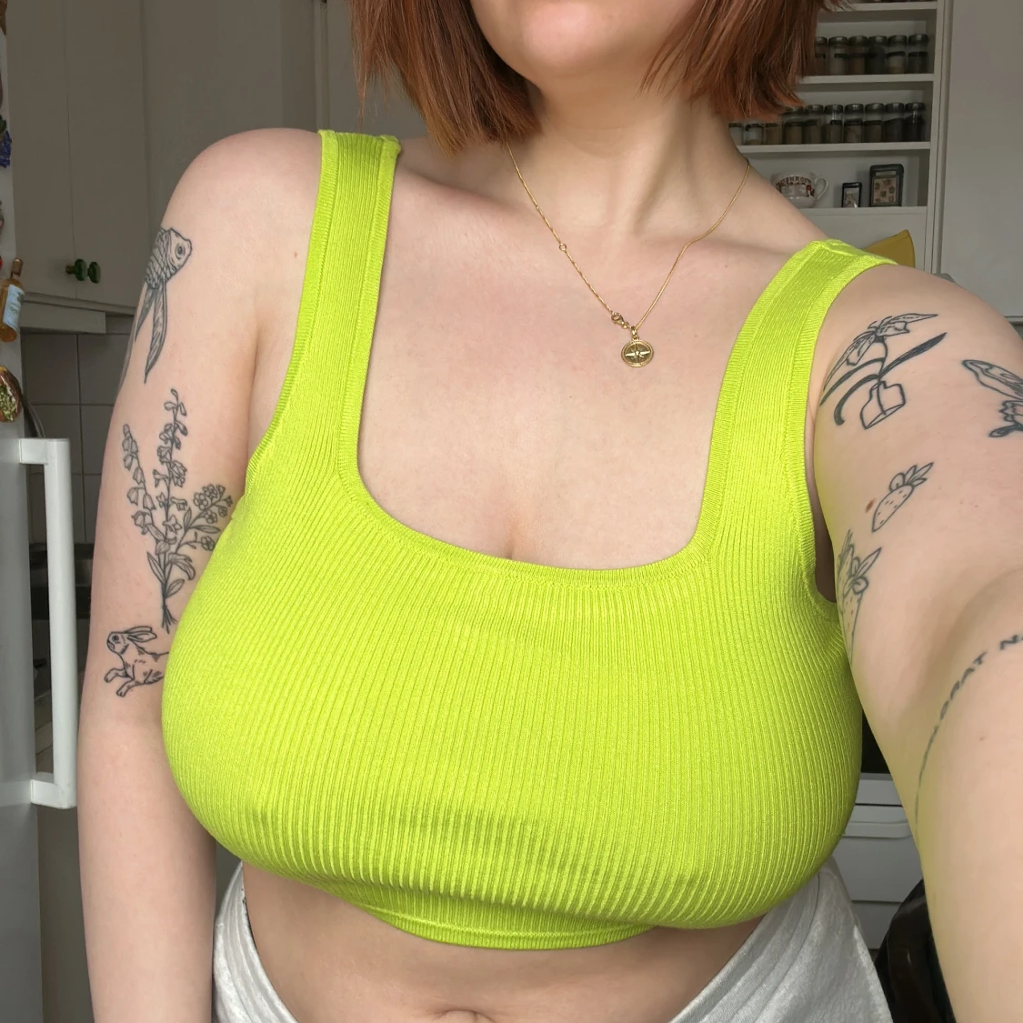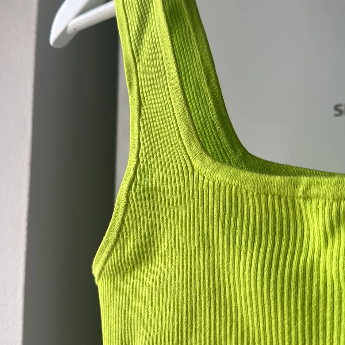 Härlig grönt linne från Hm med ribbade detaljer och rakt skuren halsringning Mycket stretch och helt oanvänd