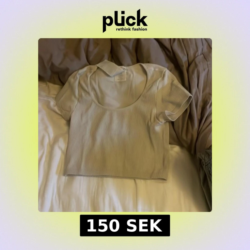 Säljer en ljusbeige croppad topp med ribbad struktur och rundad halsringning. Toppen har korta ärmar och är tillverkad i ett mjukt, stretchigt material som sitter snyggt på kroppen. Perfekt för dig som gillar minimalistisk och clean stil.