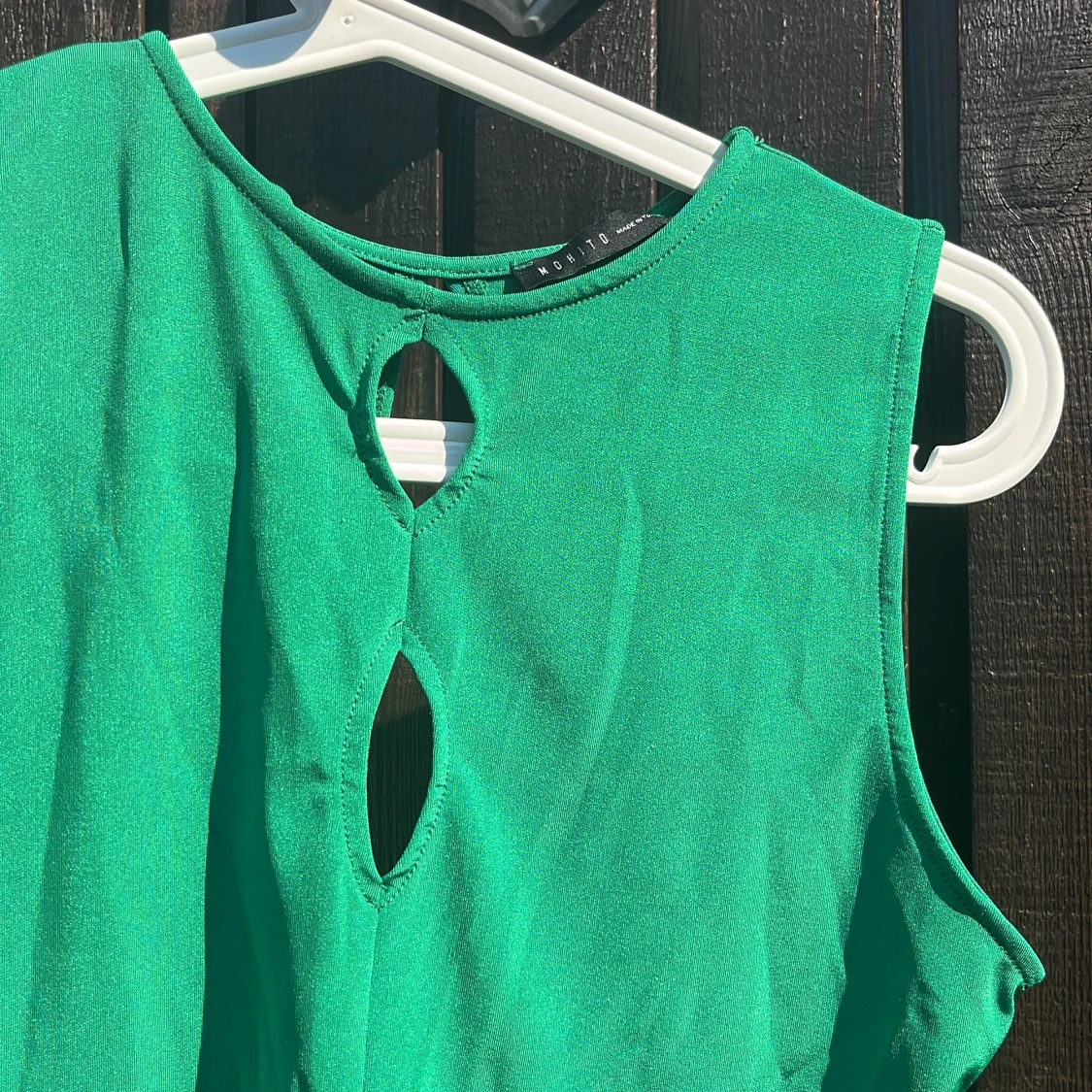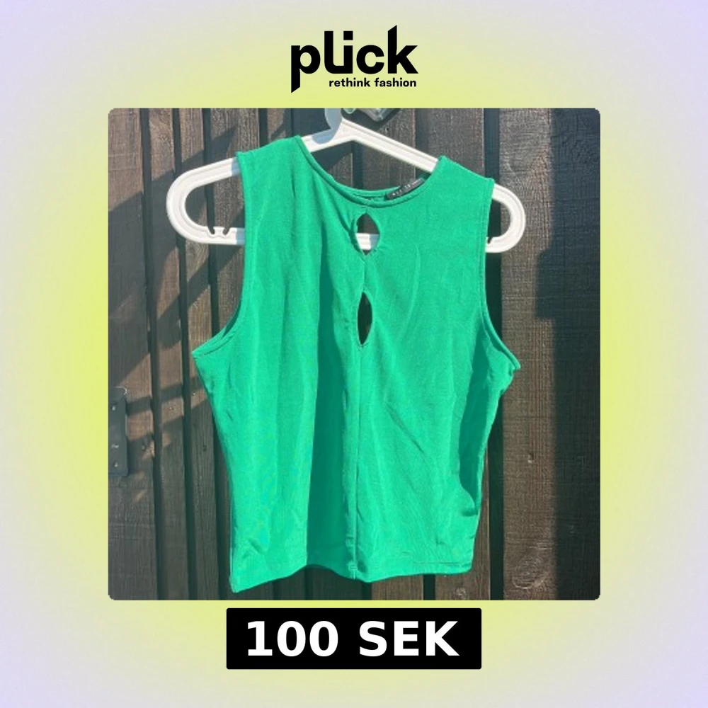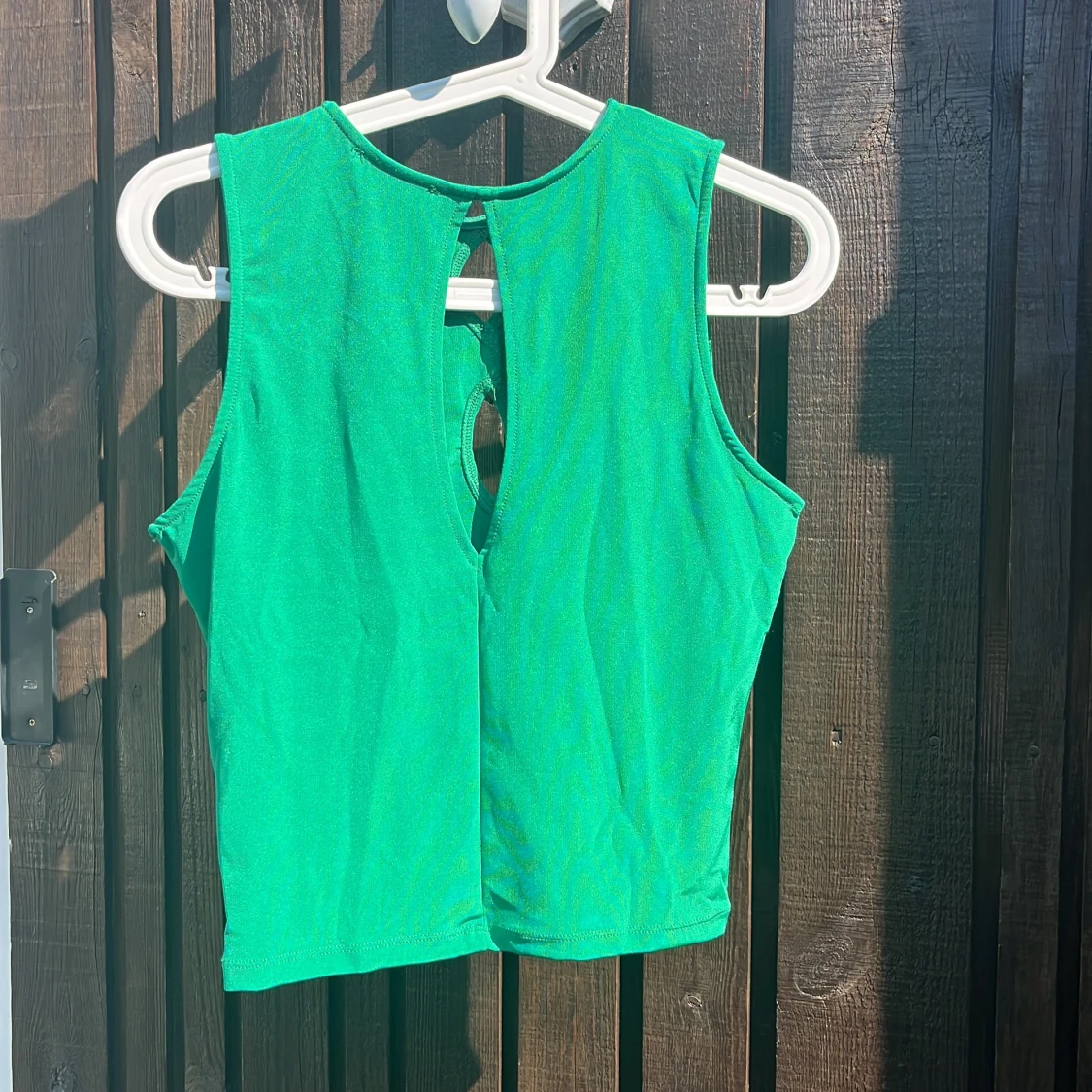 Snygg grön ärmlös topp cut outs fram och bak Modellen är croppad och har en enkel, stilren design som passar perfekt till jeans eller kjol. Materialet känns mjukt och stretchigt, vilket gör den bekväm att bära hela dagen.