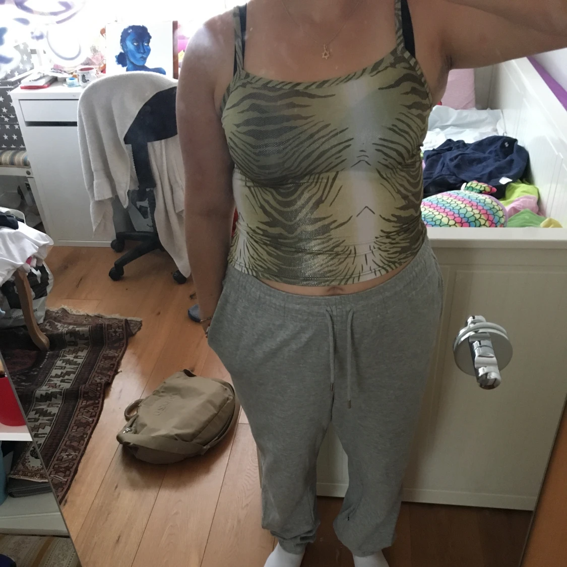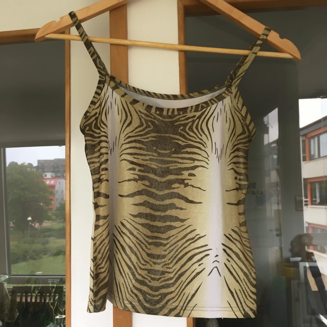 En jättefin mönstrad topp som passar S, M och L pga stretch. Tecken på användning finns då det finns två små röda fläckar på toppen men de syns knappt. Frakt ingår ej