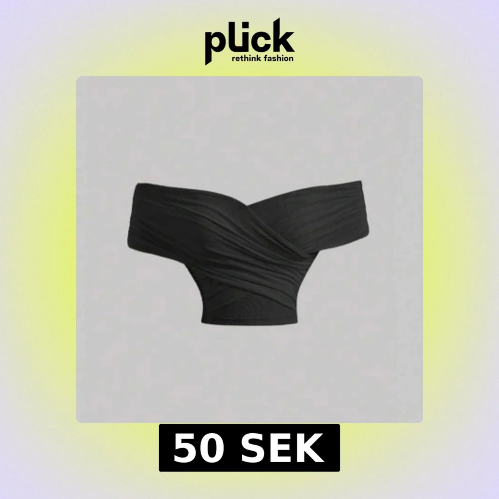 Snygg svart offshoulder topp med omlott-design från shein. Den är ny och har använts 1 gång!