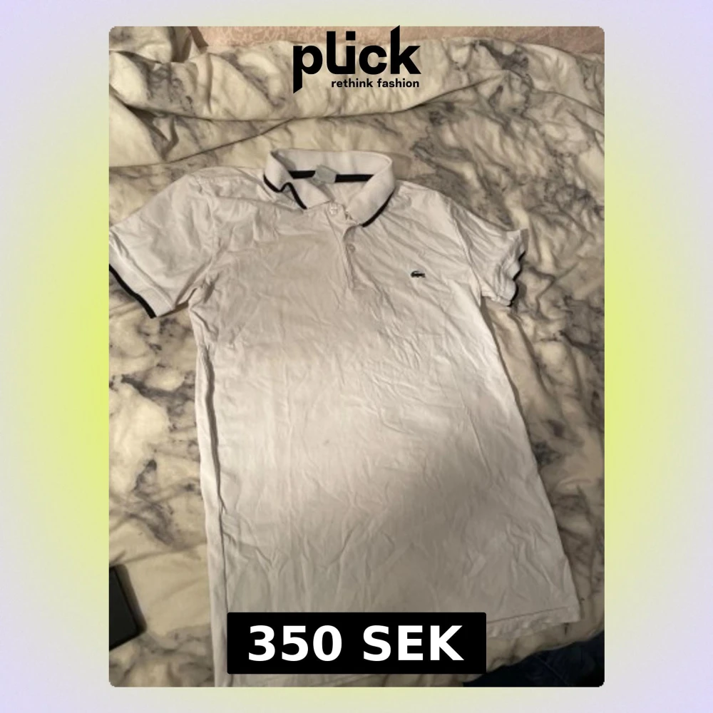 Säljer en klassisk vit pikétröja från Lacoste i storlek L. Tröjan har korta ärmar, krage med svarta detaljer och knäppning framtill. Ikoniska Lacoste-loggan med krokodil är broderad på bröstet. Perfekt för en clean och sportig look.
