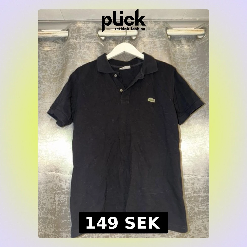 Klassisk svart pikétröja från Lacoste med den ikoniska gröna krokodilloggan på bröstet. Tröjan har korta ärmar, krage och knappar framtill. Tillverkad i mjuk bomull som känns skön mot huden. Perfekt till jeans eller shorts för en clean look.
