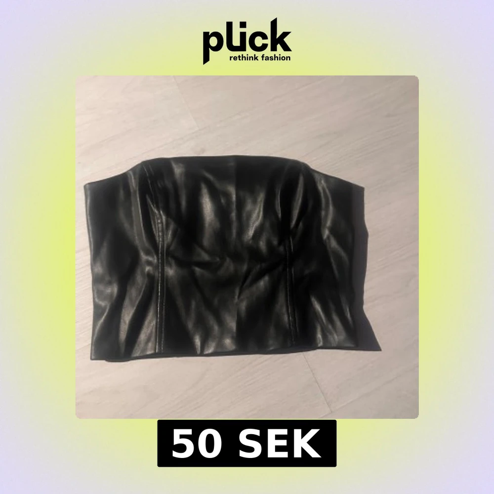 Snygg svart korsett i skinnimitation med dragkedja bak.