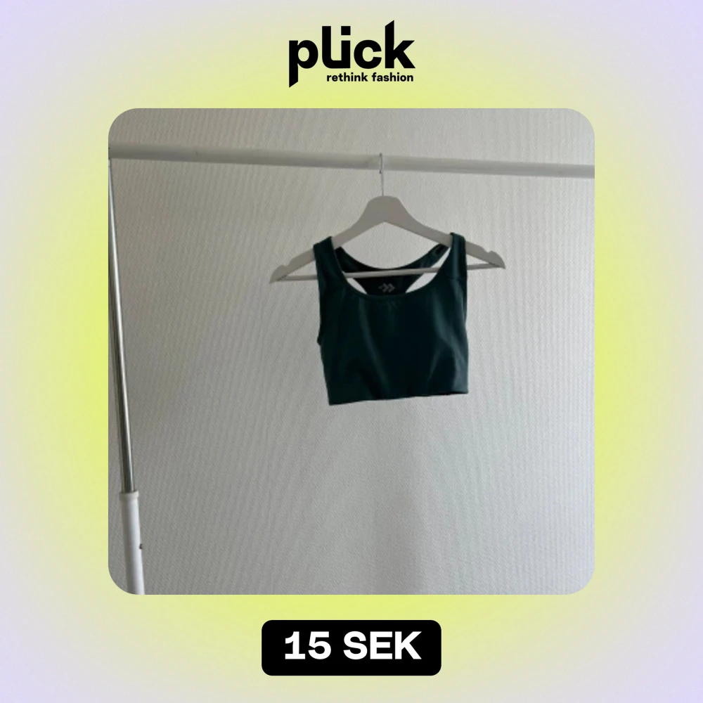 En grön gymtopp med breda axelband och en enkel design. Toppen är ärmlös och har en rund halsringning.