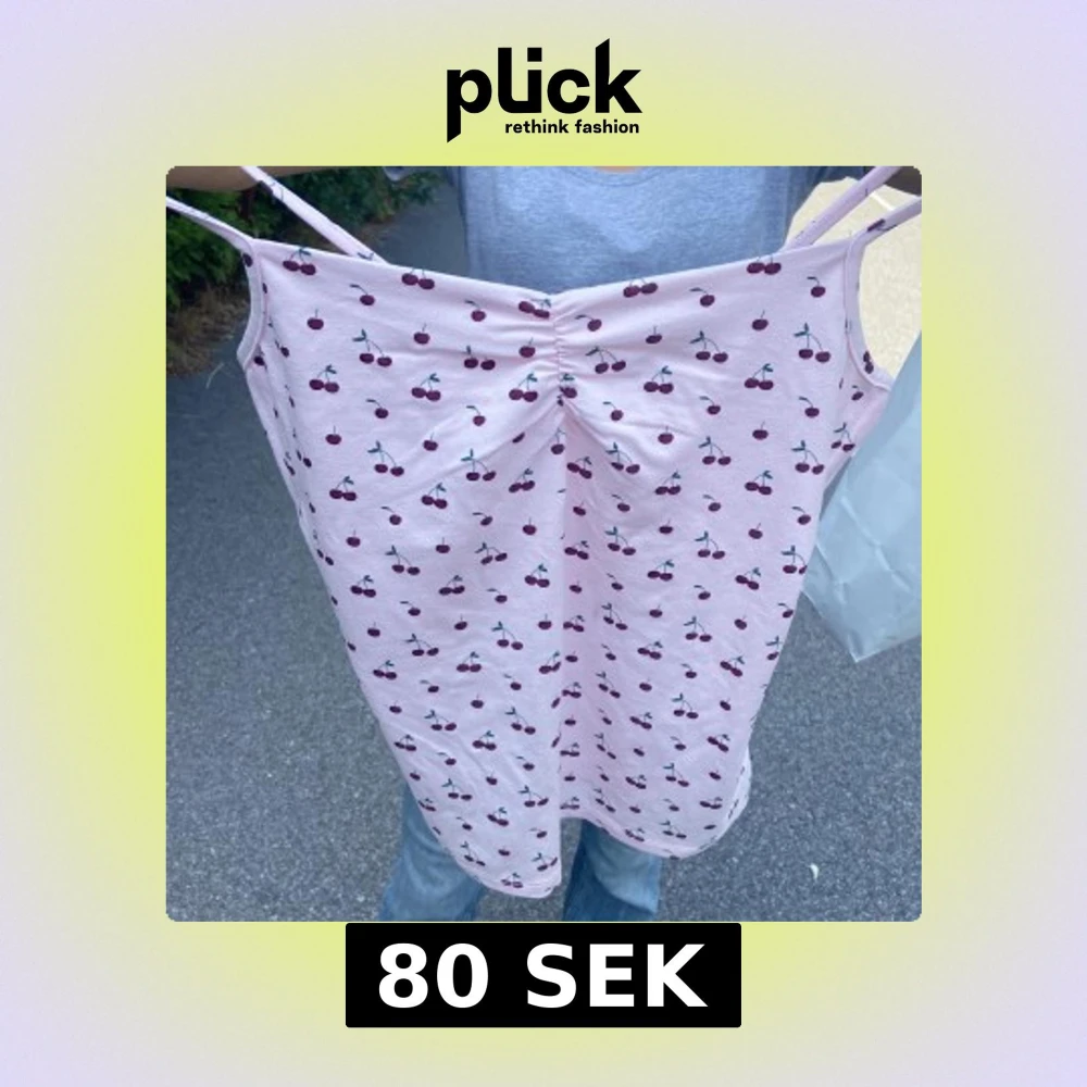 Supersöt rosa linnetopp med tunna axelband och gulligt körsbärsmönster över hela toppen. Lätt rynkning framtill ger en extra fin detalj. Perfekt för varma dagar och enkel att matcha med jeans eller kjol. Storlek L men passar bra på mos som är xxs/xs då det är väldigt tajt.