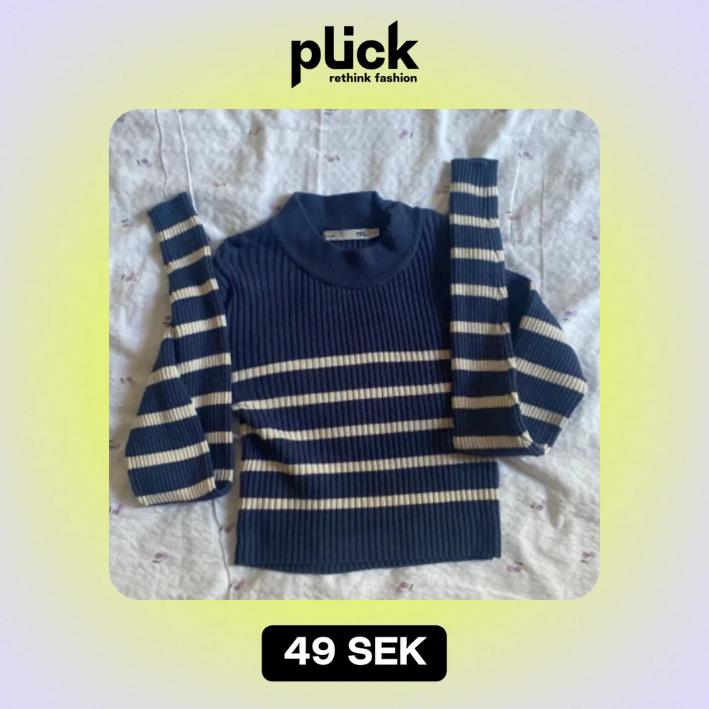 En ribbad topp med blåa och vita ränder från Lager 157 i storlek XS.