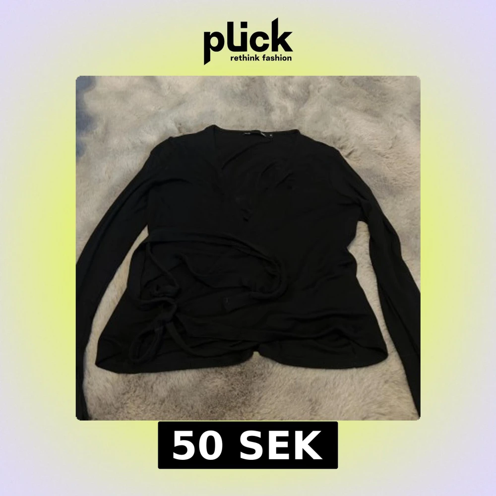 Svart långärmad omlottopp med v-ringning och knytband i midjan. Snygg och enkel design som passar perfekt till jeans eller kjol. Tunn och mjuk i materialet för en skön känsla.