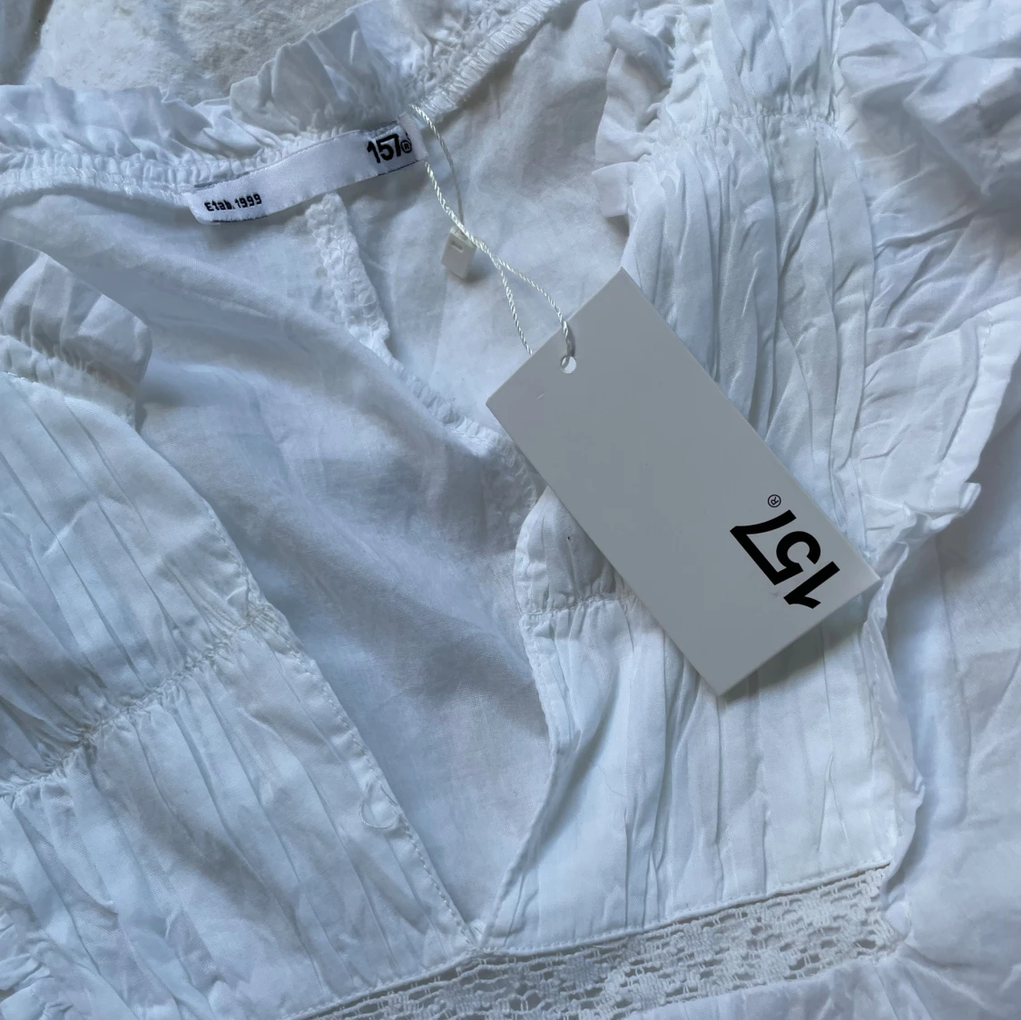 Jätte fin vit blus! Helt ny! (Ny pris 150 kr) Jag är 1,70 cm lång och det är mina egna bilder, Hör gärna av dig om du undrar något, köp gärna med Instabox då jag postar snabbast där! Kvar tills markerad som såld 🫶🏼💘💘