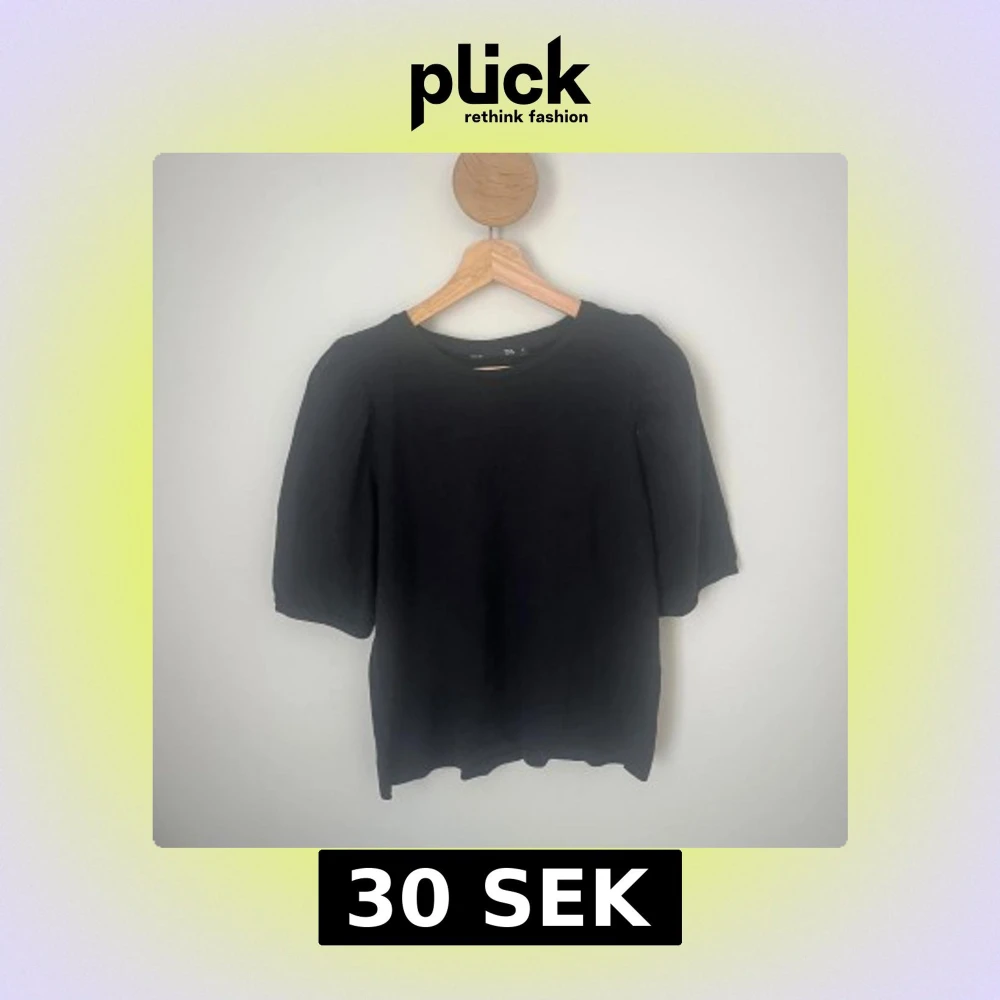 En svart topp från 157 i 100% bomull med puffiga korta ärmar och rund halsringning. Har använts några gånger men är i fint skick. Hör av dig om det är något!