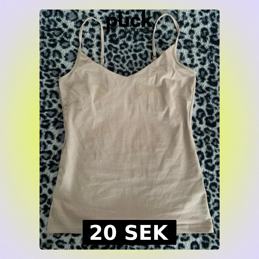 Säljer en enkel och stilren beige linnetopp med smala axelband och v-ringad hals. Toppen är ärmlös och har en mjuk, lätt stretchig känsla som passar perfekt till sommaren. Perfekt att matcha med jeans eller kjol för en clean look.