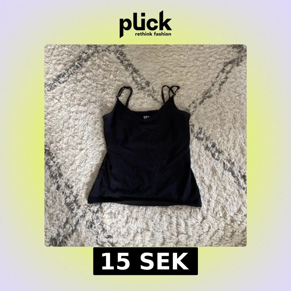 Enkel och stilren svart linnetopp från 15 med smala axelband och rak passform. Perfekt att matcha med jeans eller kjol för en clean look. Mjuk och skön bomullskänsla, passar till många olika outfits.