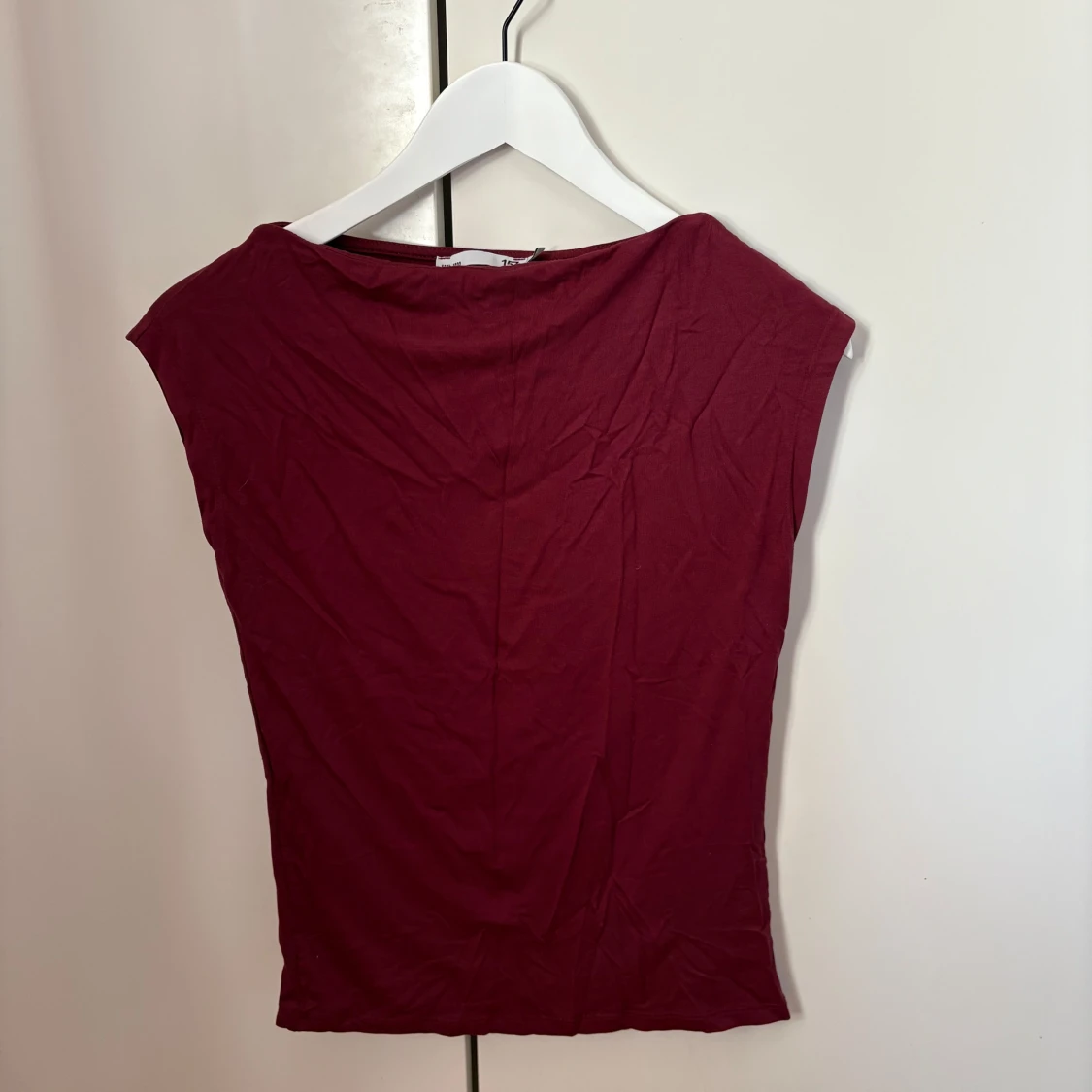 Snygg vinröd topp från 157 i mjuk bomull. Modellen är ärmlös med bredare axlar och har en enkel, rak passform som sitter skönt mot kroppen. Aldrig använd