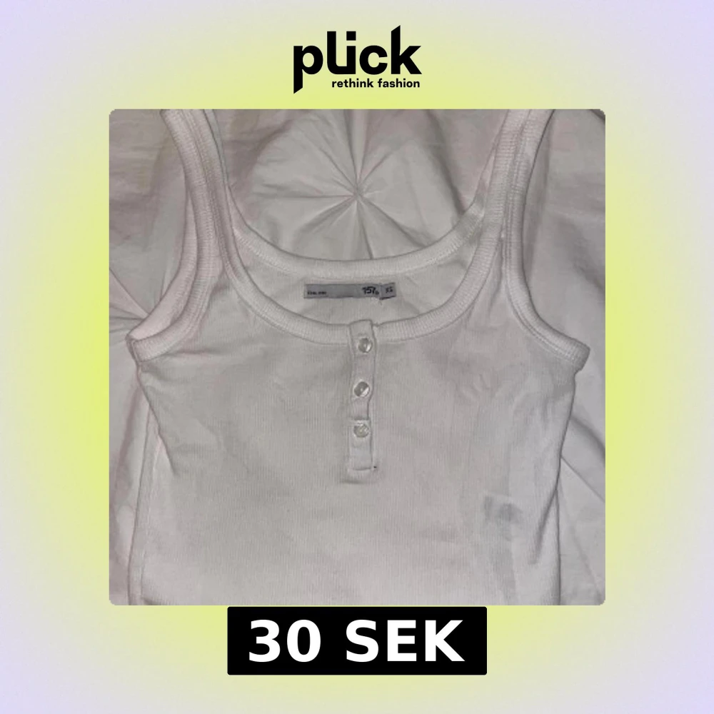 Säljer en vit ribbad linnetopp från lager 157 i storlek XS. Toppen har rund halsringning och tre knappar framtill som snygg detalj endast använd ett fåtal gånger!🥰