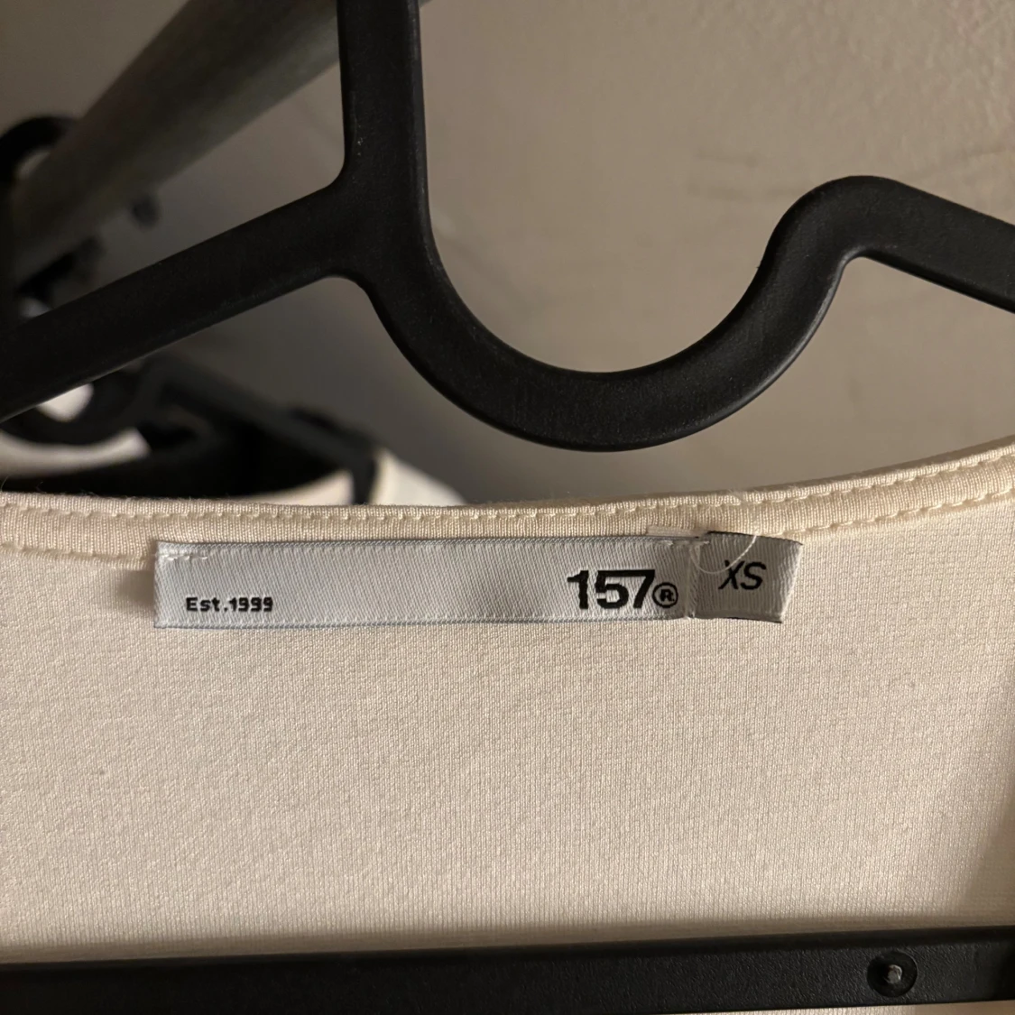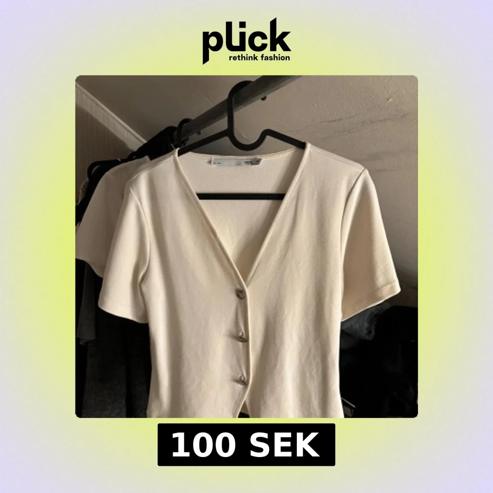 Säljer en vit blus från 157 i storlek XS. Toppen har korta ärmar, v-ringning och tre silver knappar framtill. Perfekt för dig som gillar en enkel men trendig look. Materialet känns mjukt och skönt mot huden.