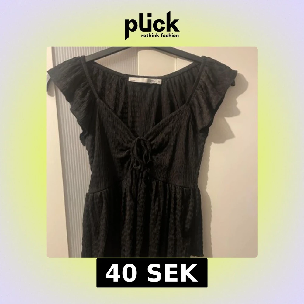 Supersöt svart blus från lager 157 med volangärmar och snygg snörning framtill. Toppen har en lätt rynkad struktur och v-ringning, perfekt att styla med jeans eller kjol. Luftig och skön modell med feminina detaljer.