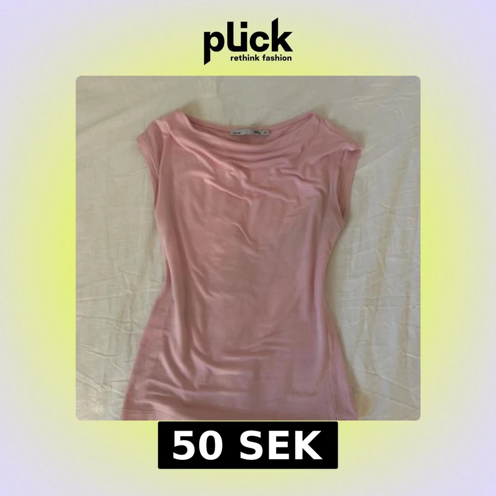 En enkel och stilren ljusrosa topp med rund halsringning och ärmlös design. Tröjan är använd ett fåtal gånger men är i bra skick!