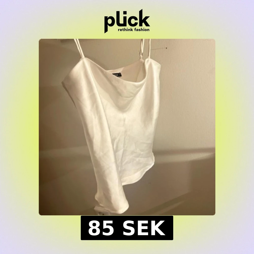 Snyggt vitt satinlinne från Gina Tricot med smala axelband och en elegant drapering framtill. Perfekt för en stilren look.