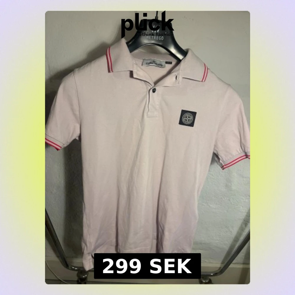 Rosa pikétröja från Stone Island med klassisk krage och röda ränder på krage och ärmslut. Tröjan har korta ärmar och en broderad logotyp på bröstet. Tillverkad i bomull för en skön känsla och snygg passform. Pris 299kr, storlek S. Vid funderingar är det bara till att höra av dig