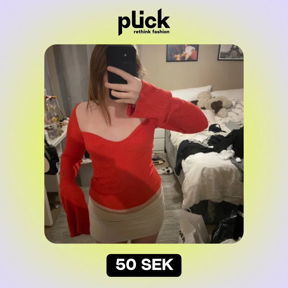Röd ribbstickad långärmad tröja med vida ärmar från hm storlek xs