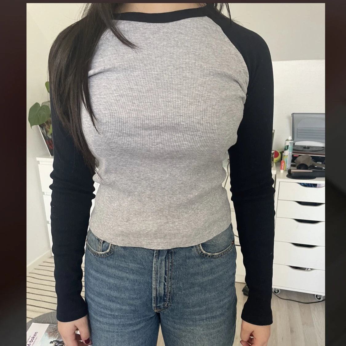 Långärmad topp från brandy Melville (Bella top) med marinblåa sleeves och grå mitten❤️