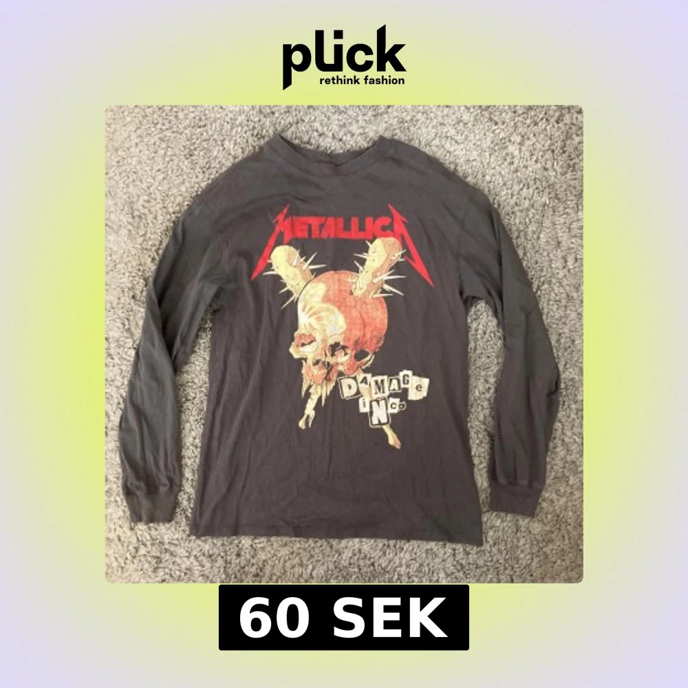Grå Långärmad Metallica tröja i strl XS. Tröjan är begagnad och är i gott skick förutom ett litet hål som syns på bild tre. Meddela gärna angående eventuella frågor. :)