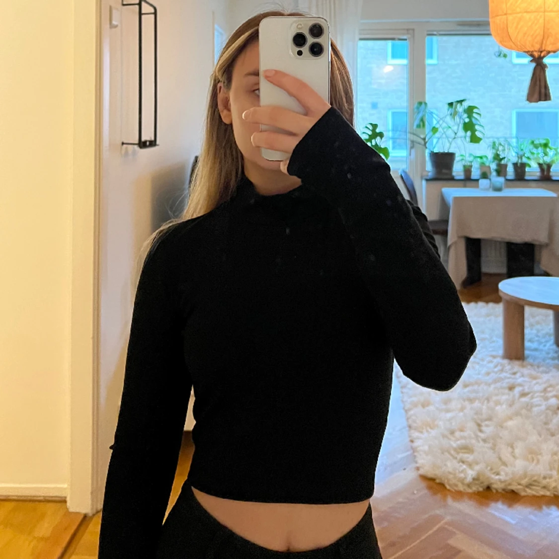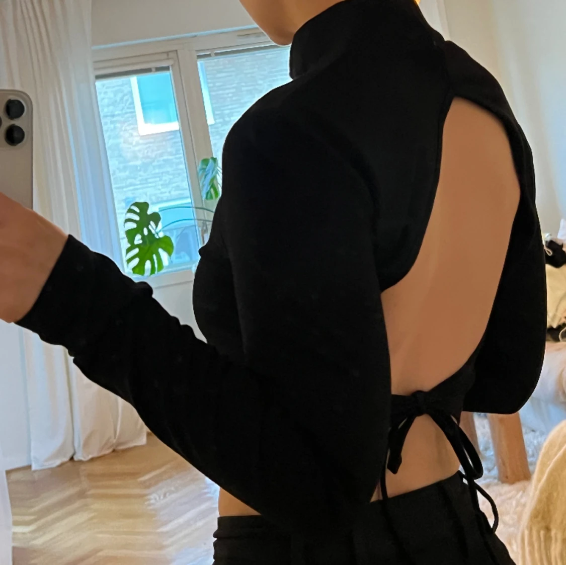 Svart långärmad topp med öppen rygg från NA-KD Aldrig använd. Storlek S. 100:- ex frakt.