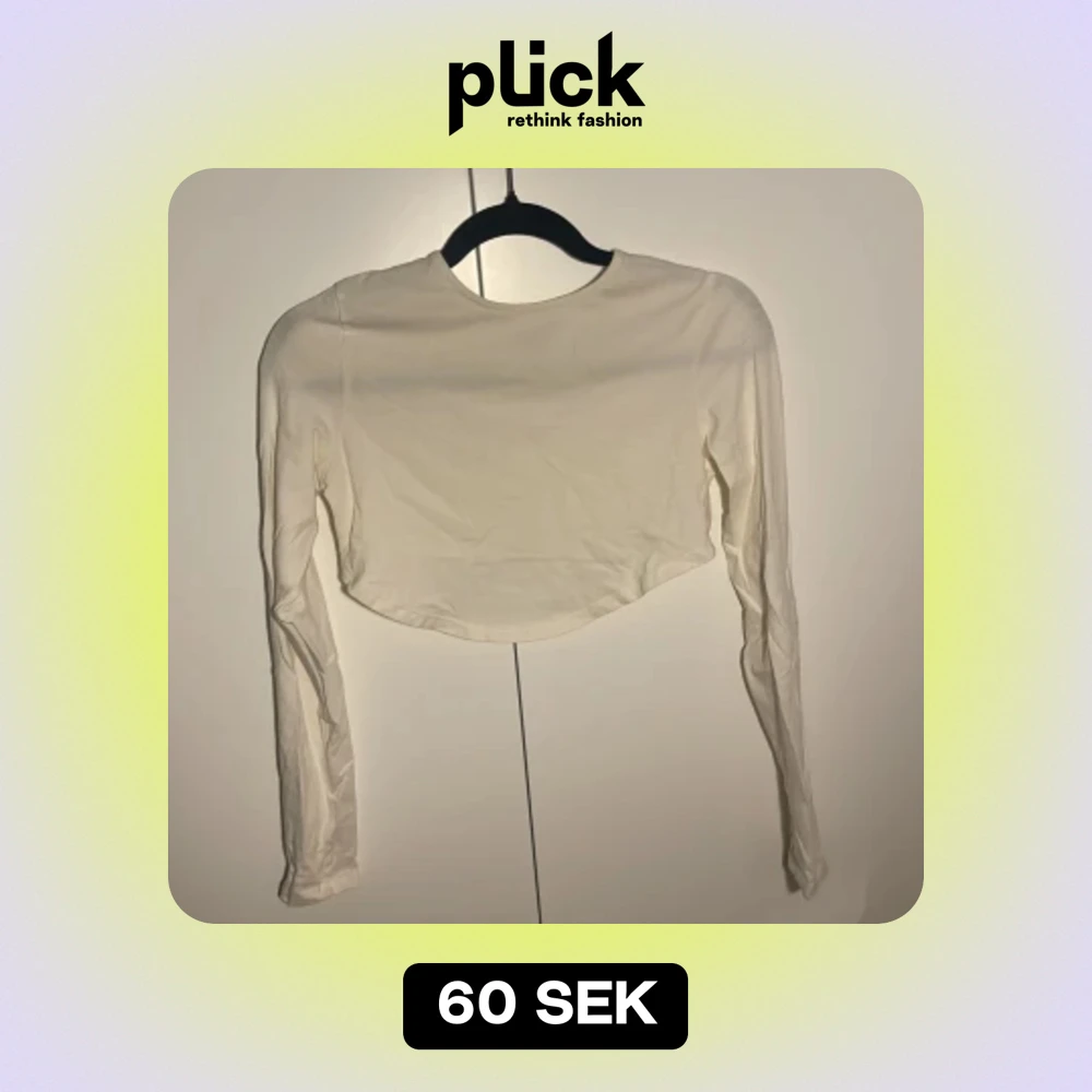 Liten rundning och längre där framme (fortfarande magtröja) och kortare där bak. Från Nelly, deras egna märke. Fin skick. Ganska tunn och man kan se igenom litegrann, funka med vit bh.