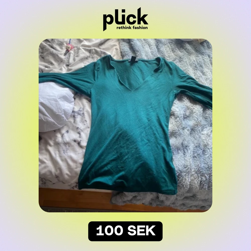 säljer denna gröna långärmade tröjan som är lite v-ringad. 💕 Har en takt passform och jag brukar använda storlek xs-xxs på sådana tröjor.