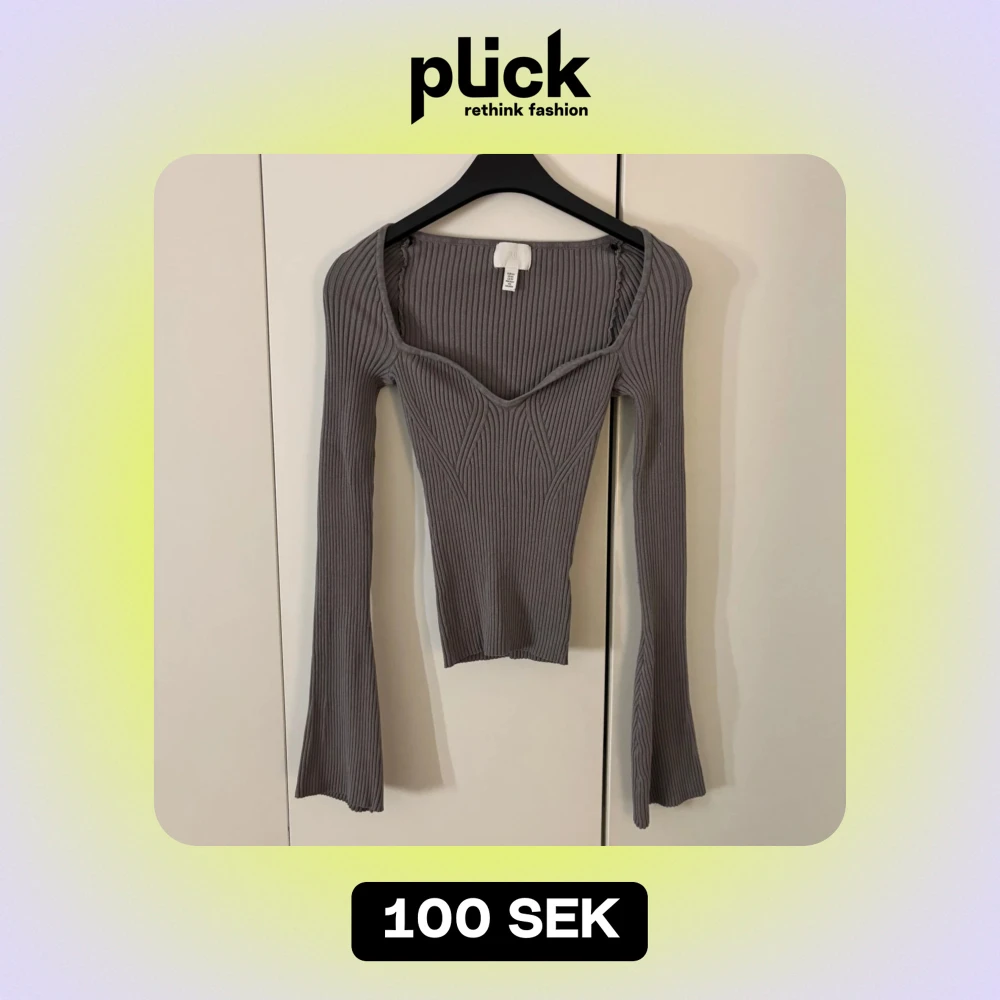 En grå figurnära topp från H&M i stolek xs. Utsvängda ärmar och superfin urringning. Superbra skick.