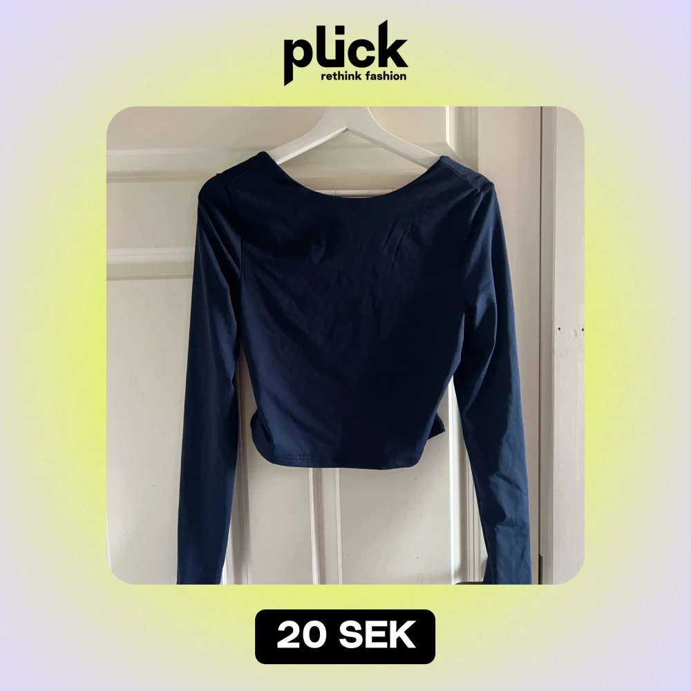 Snygg mörkblå croppad topp med långa ärmar som är öppen i ryggen som aldrig är använd från SHEIN i storlek M