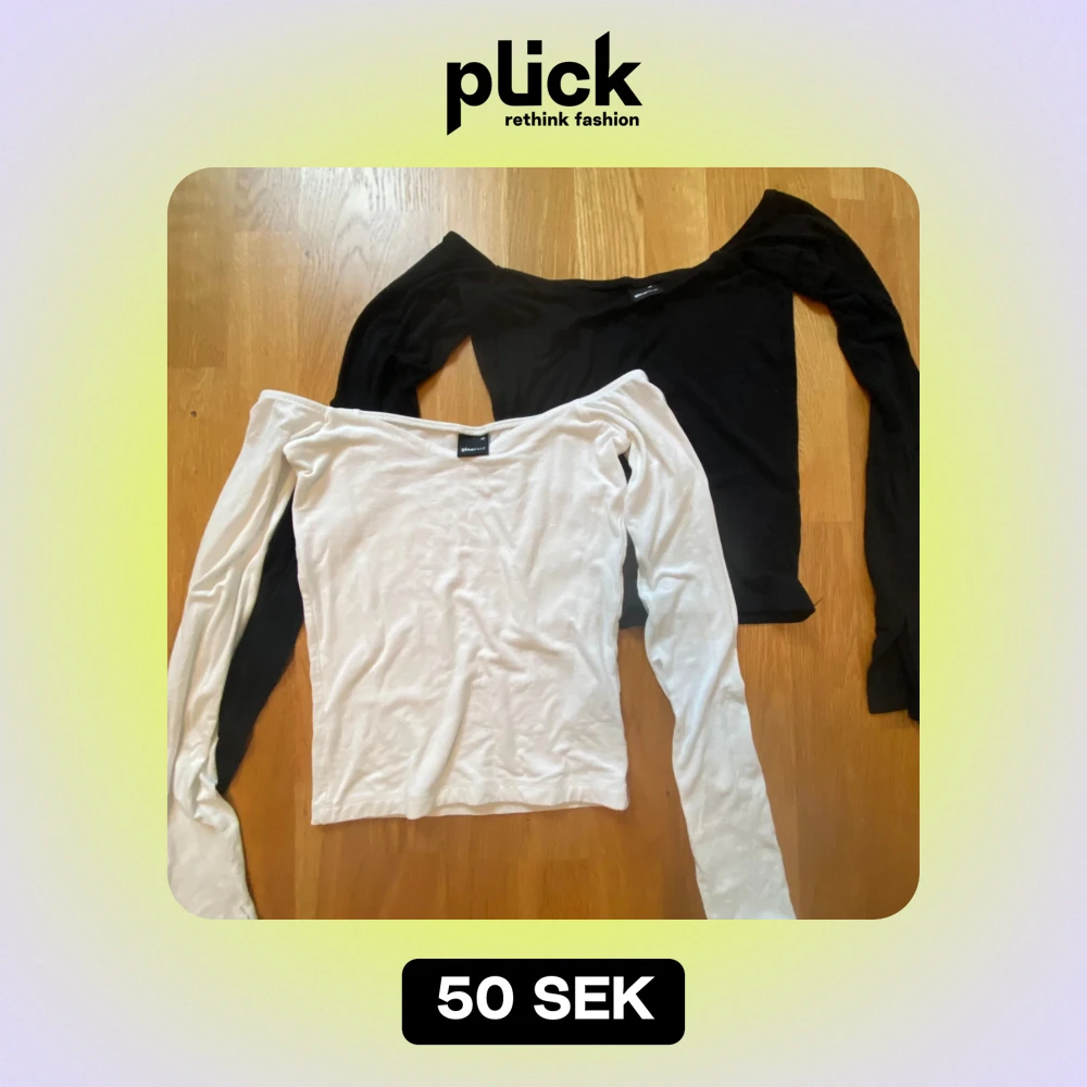 En svart och en vit långärmad tröja från Gina Tricot. Dem går ner vid axlarna och har en liten utsvängning vid handen.