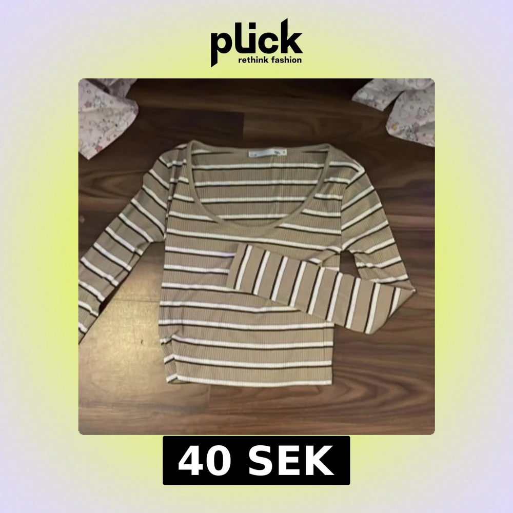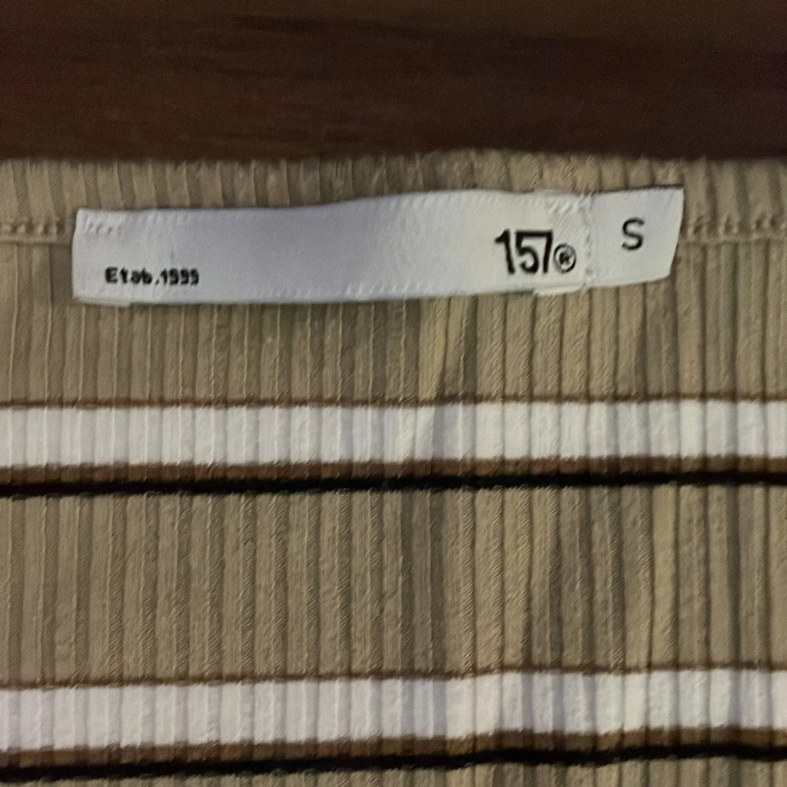 Säljer en randig långärmad tröja med urringning. Färgerna är brun/beige, vit och svart. 💕 den kommer från Lager 157 och är i dam storlek S 💕⭐️