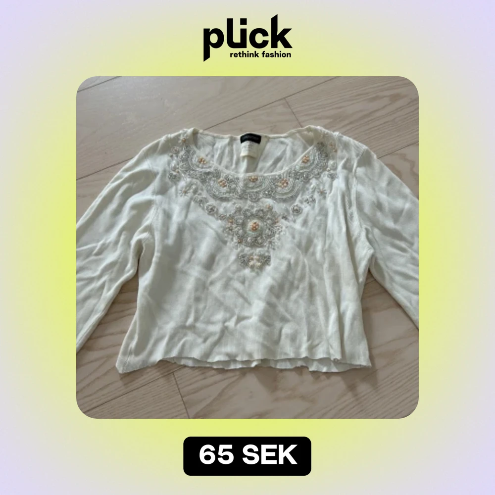 Vit långärmad tröja köpt second hand och klippt vid magen själv. Bra skick