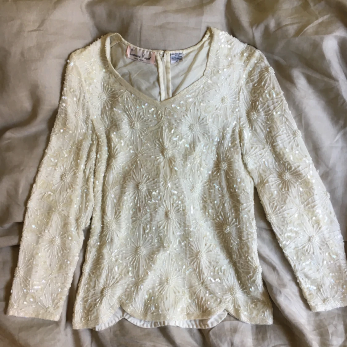 Glammig paljett- och pärltopp, 100 % silke. Vintage. Superfint skick! Möts upp i Uppsala. Köparen står för frakt.