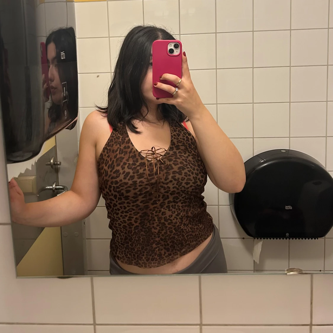 Snygg leopardmönstrad halterneck topp med snörning framtill. Perfekt för en utekväll eller fest! Toppen är i ett mjukt och stretchigt material som sitter bekvämt. Den har en tight passform och passar olika storlekar (från S till L)💗💗
