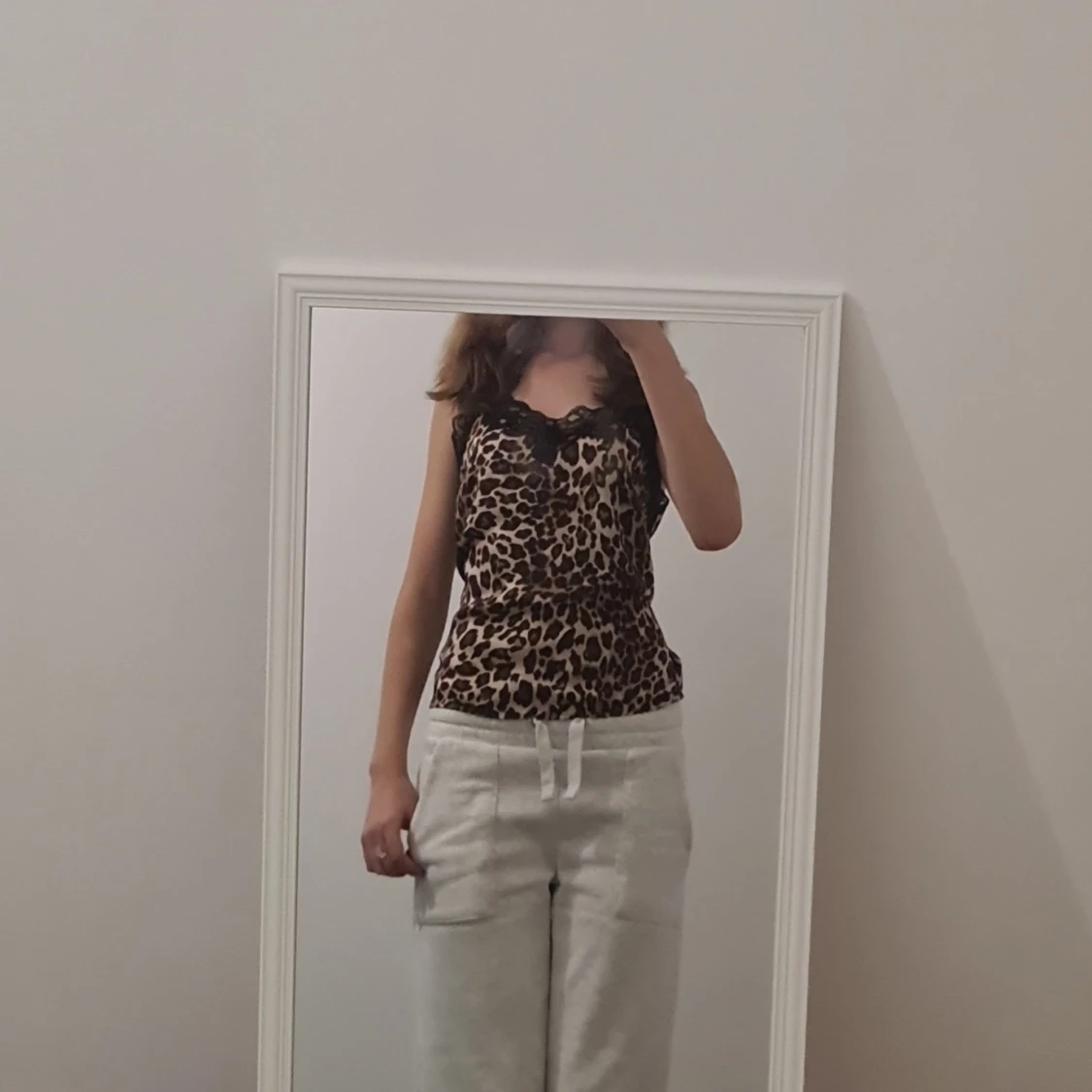 Gulligt leopardlinne med spets i nattlinne material. Det är förmodkigen ett nattlinne men har själv haft det ute och sett andra som har liknande. Skriv vid frågor