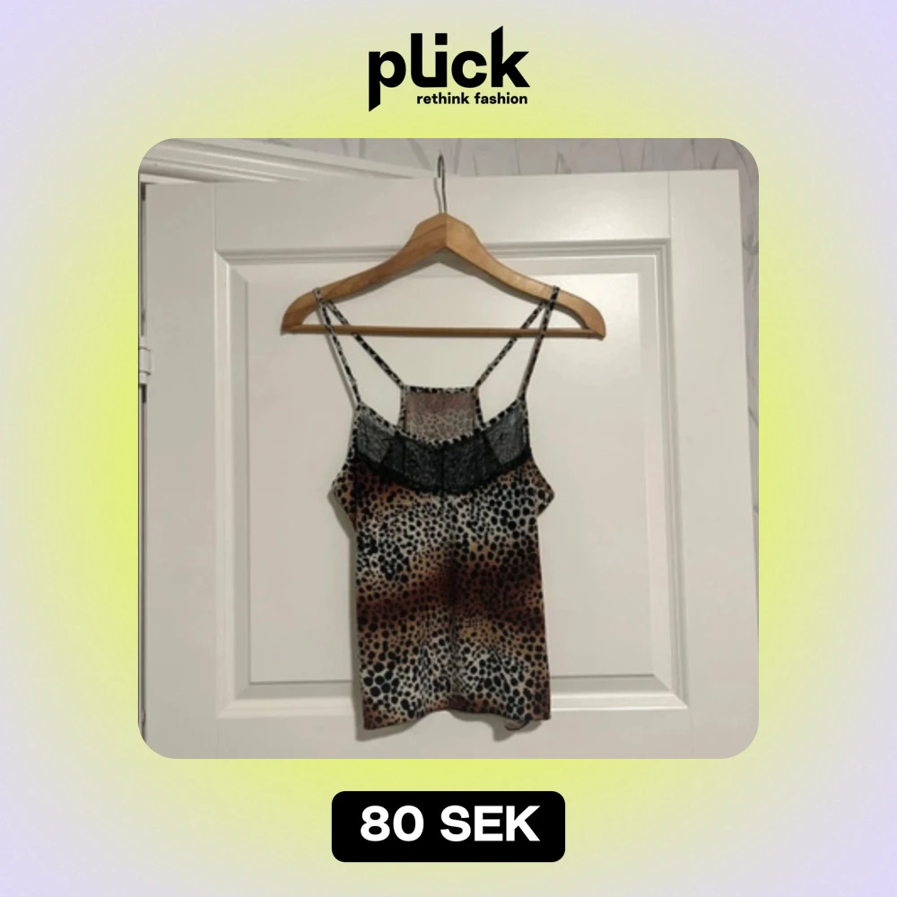 Snygg leopardmönstrad linne med tunna axelband och spetsdetaljer vid bysten. Perfekt för en utekväll eller sommarfest! Materialet är lätt och luftigt, vilket gör den bekväm att bära. Ett måste för garderoben om du gillar djurmönster!