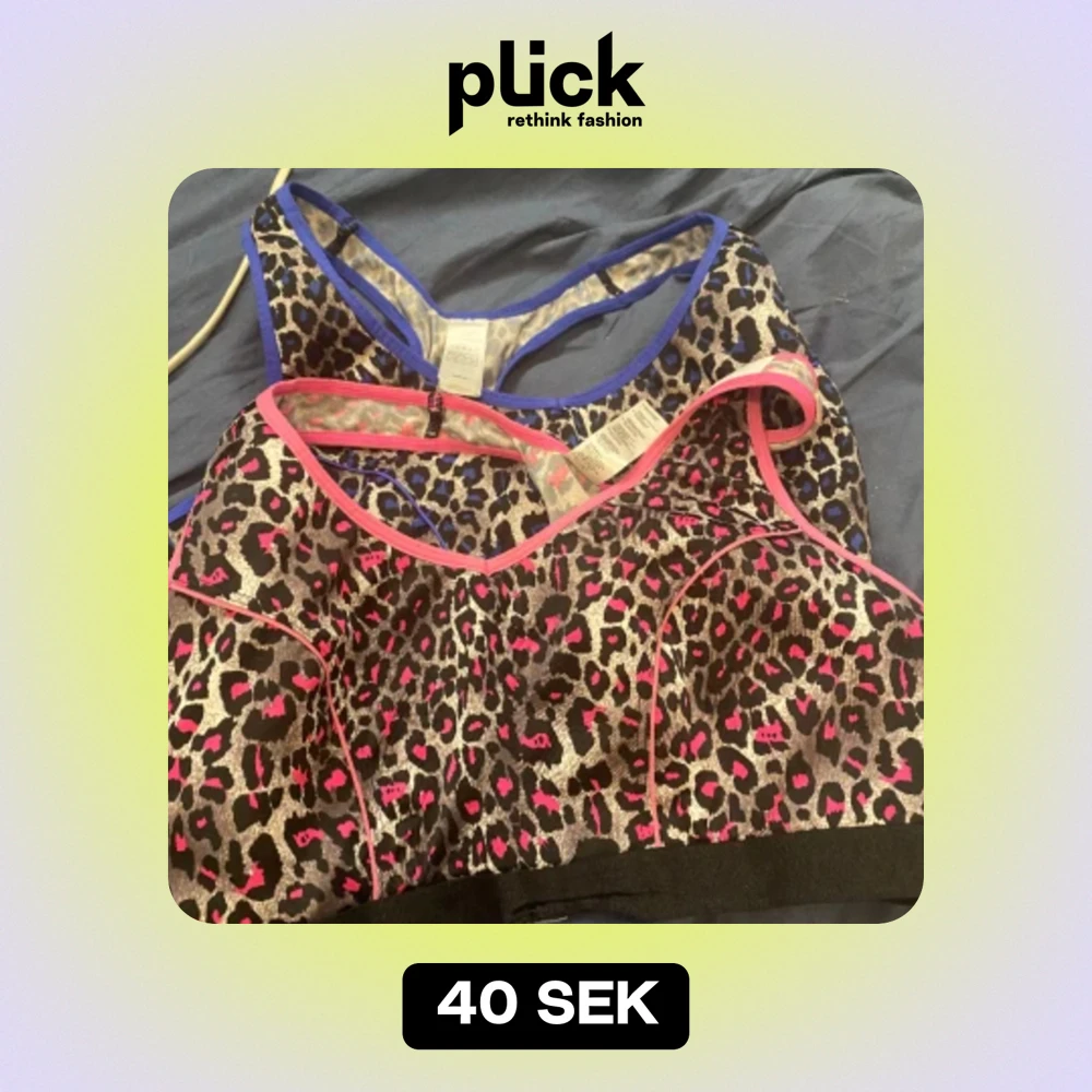 Rosa & blå leopard sport bh-ar Stretchig så passar förmodligen M också. 40:-/styck 65 för båda