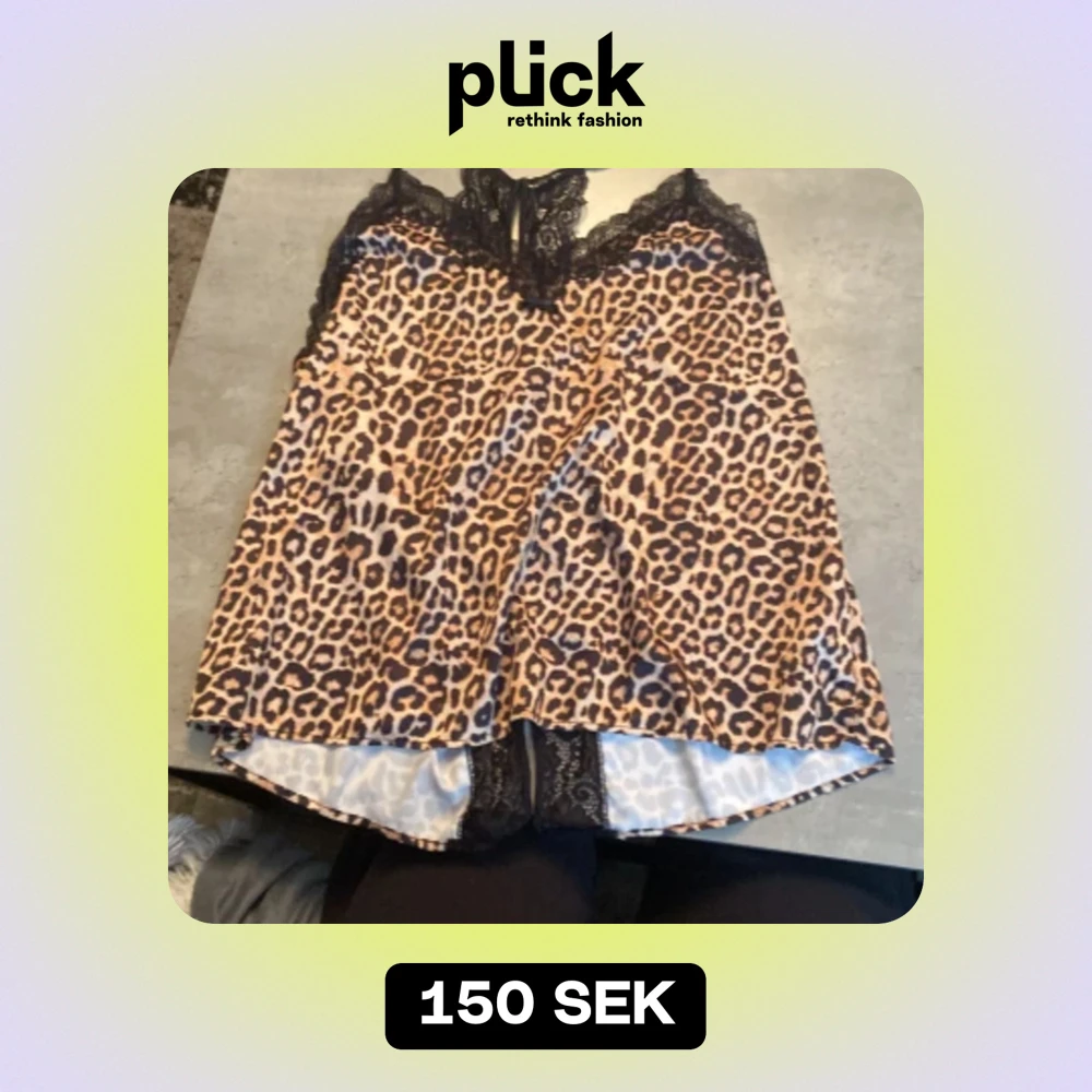 Säljer en snygg leopardmönstrad linne med svarta spetsdetaljer. Den har en liten rosett framtill och är perfekt för en festlig kväll. Materialet känns silk och lyxigt.