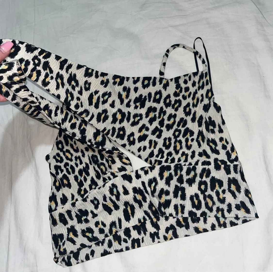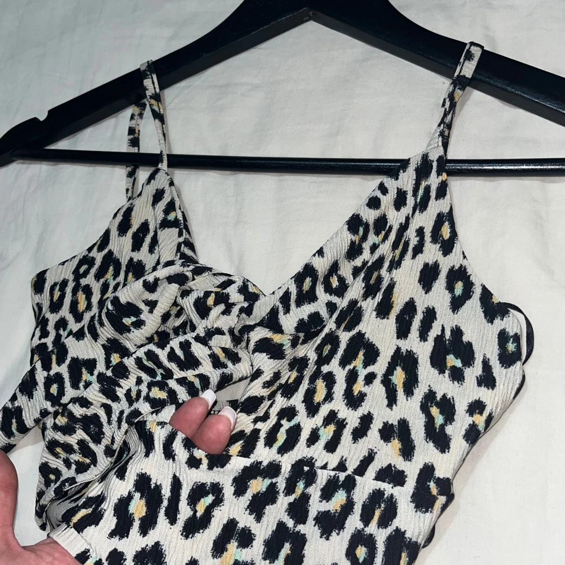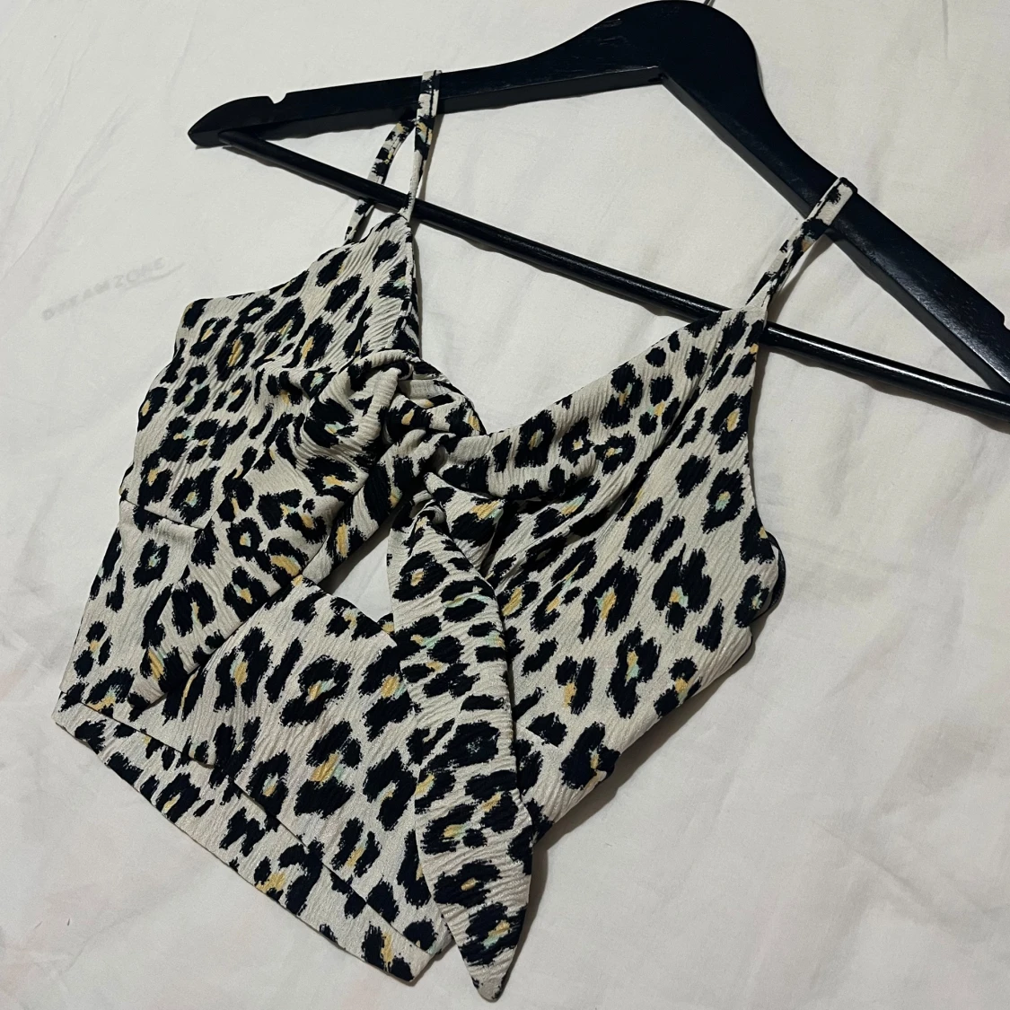 Skitsnygg leopardtopp!🐆 Man knyter en liten rosett med banden men skulle gissa på att det går att knyta hursomhelst egentligen. I bra skick, inte använt så mycket!🎀 Från Gina tricot