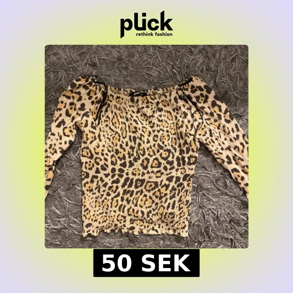 Trendig topp från Gina Tricot med leopardmönster i beige, brunt och svart. Det går att ha den som vanligt men även off shoulder. Toppen har långa ärmar och är ribbad med åtsittande passform. 💘