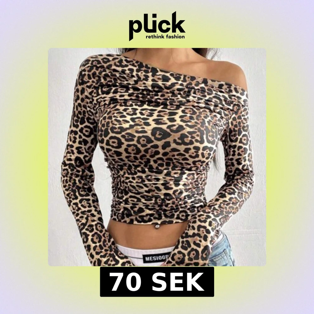 Trendig leopardmönstrad offshoulder topp med långa ärmar. Denna croppade topp har en tight passform och är perfekt för en djärv stil.