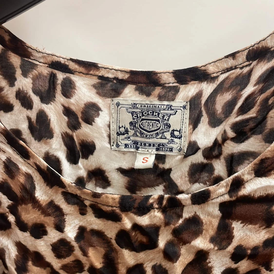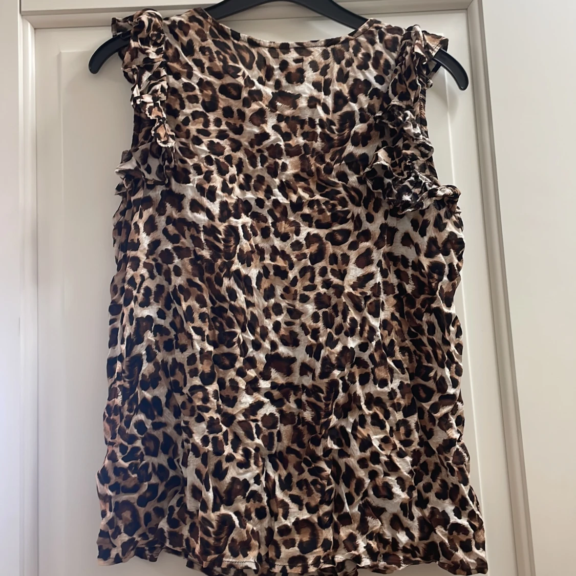 Snygg ärmlös topp från Crocker med leopardmönster i bruna, svarta och beige toner. Toppen har volangdetaljer vid axlarna och en rund halsringning. Väldigt bra skick, knappt använd🤗 Passar som s/xs, inga defekter!❣️
